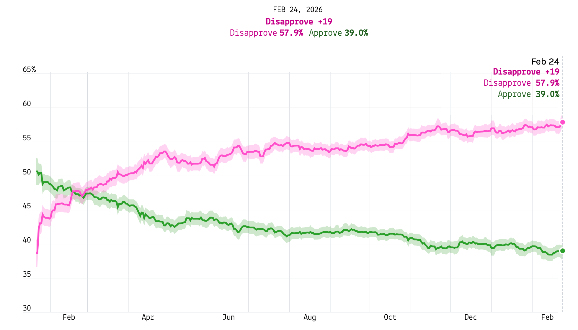 Trump’s popularity has always had a ceiling, with approval never reaching 50 percent. It has always seemed that he had something of a high floor, too, at about 35 percent. Even after Jan. 6, 34 percent still approved of his presidency.
